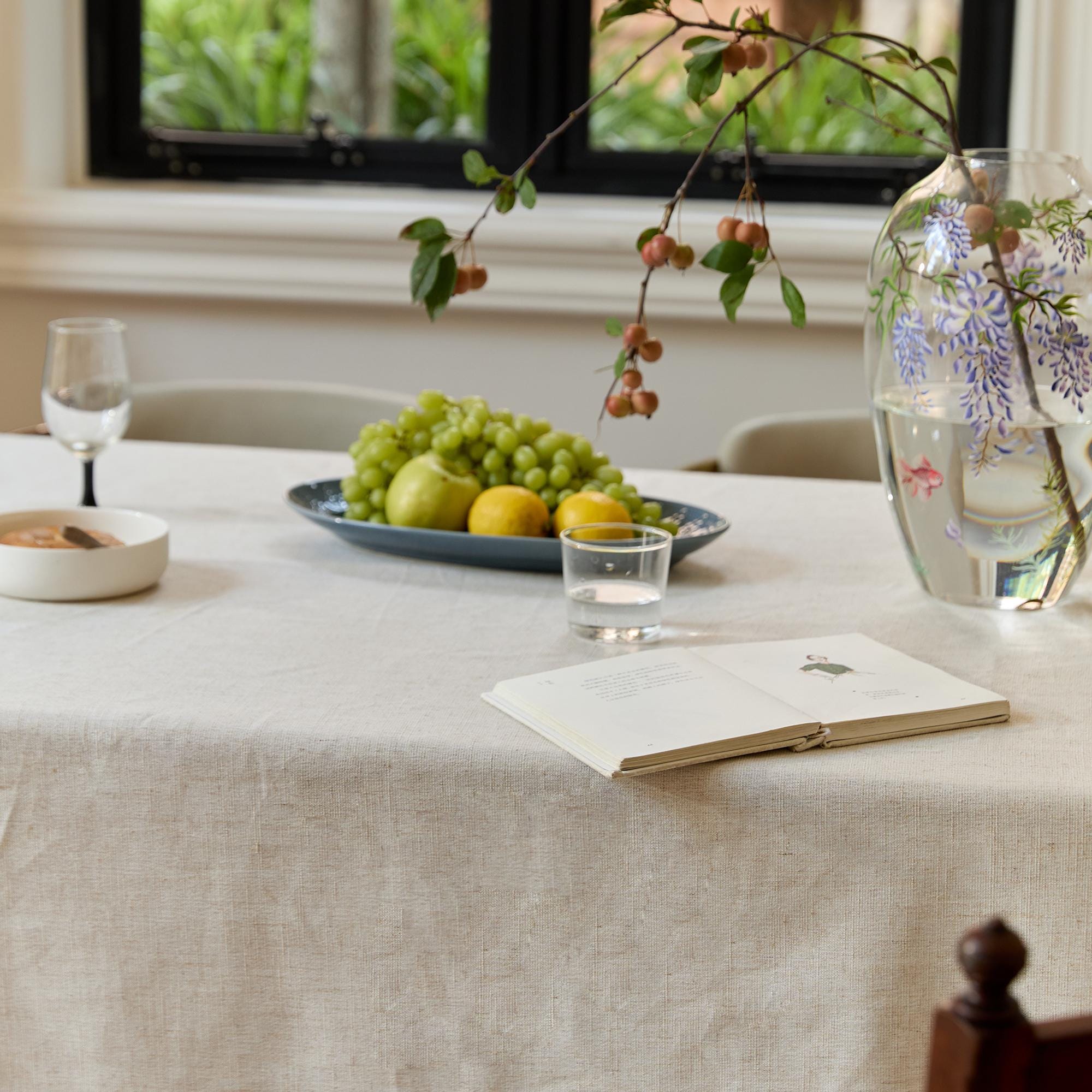 Linen texture: The fine weave creates a natural feel and a relaxed, holiday vibe.