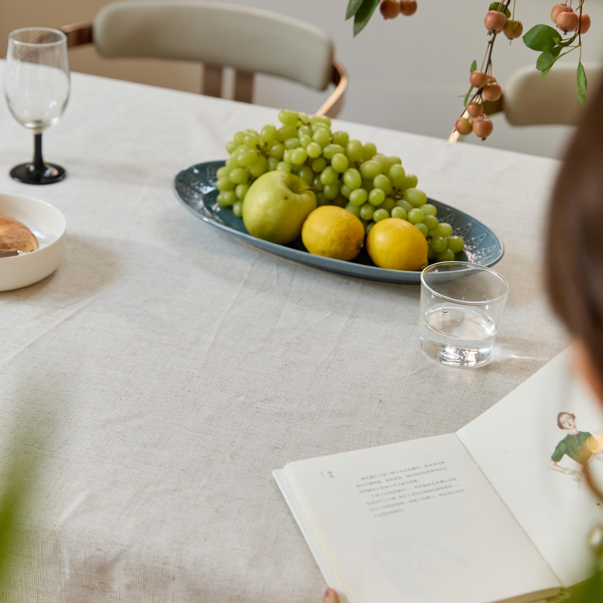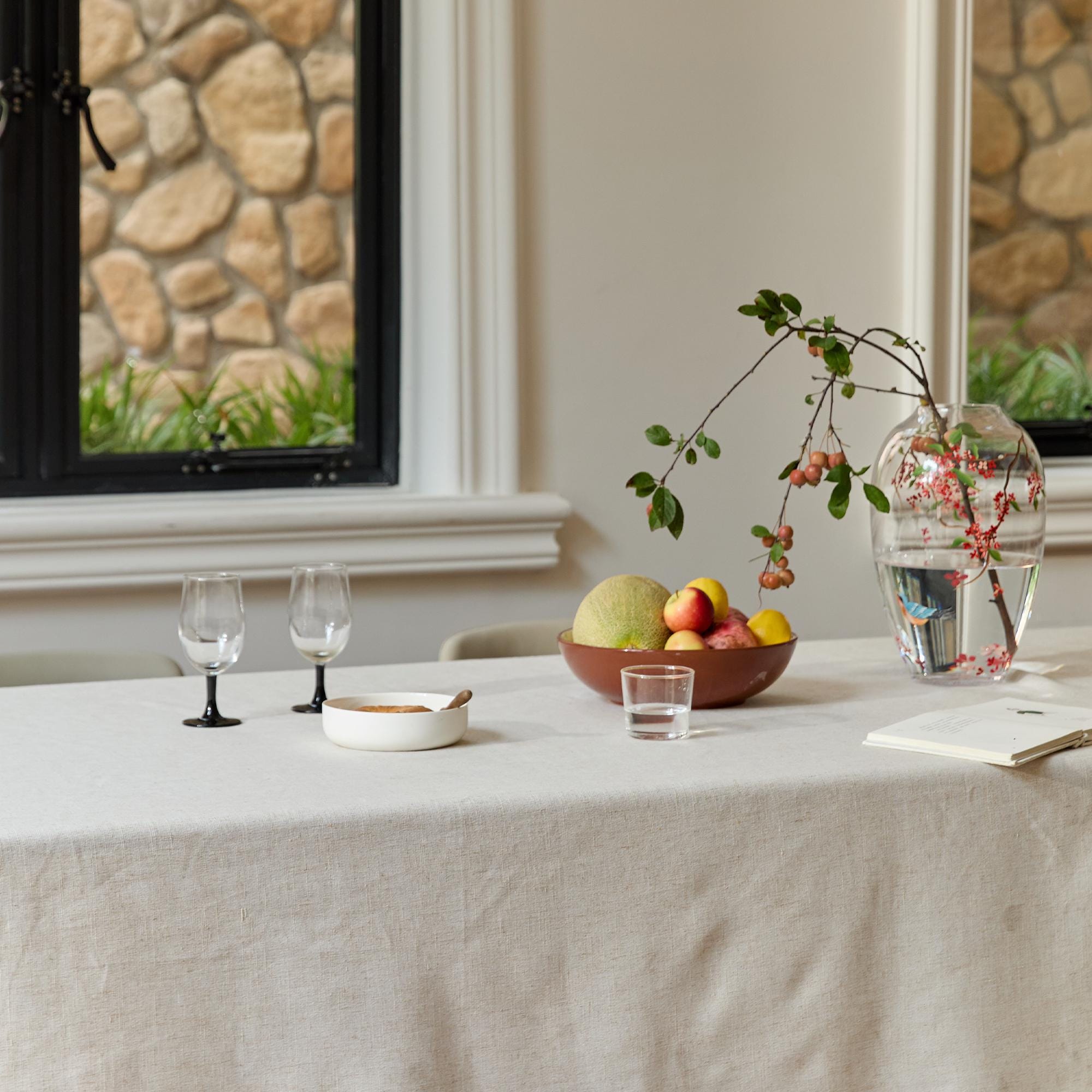 Pair with white porcelain or clear glass, a wooden tray, and linen napkins for a minimalist, “undecorated” look.
