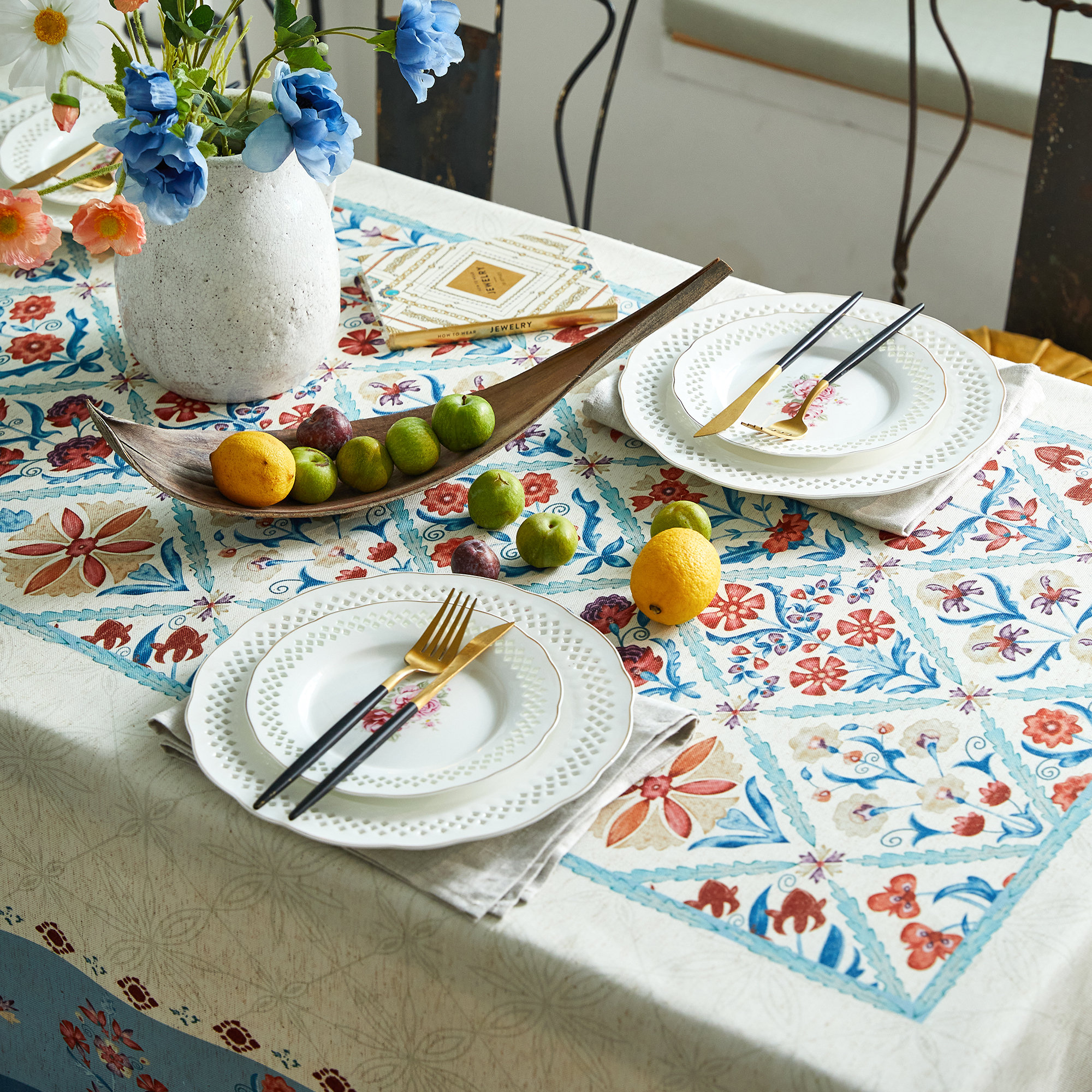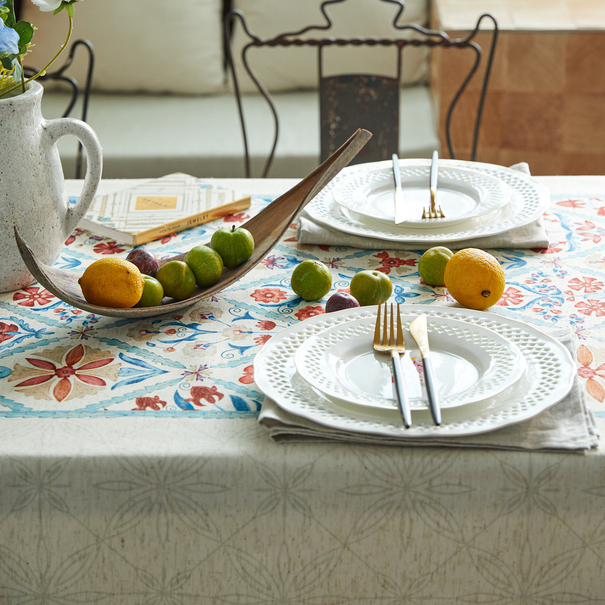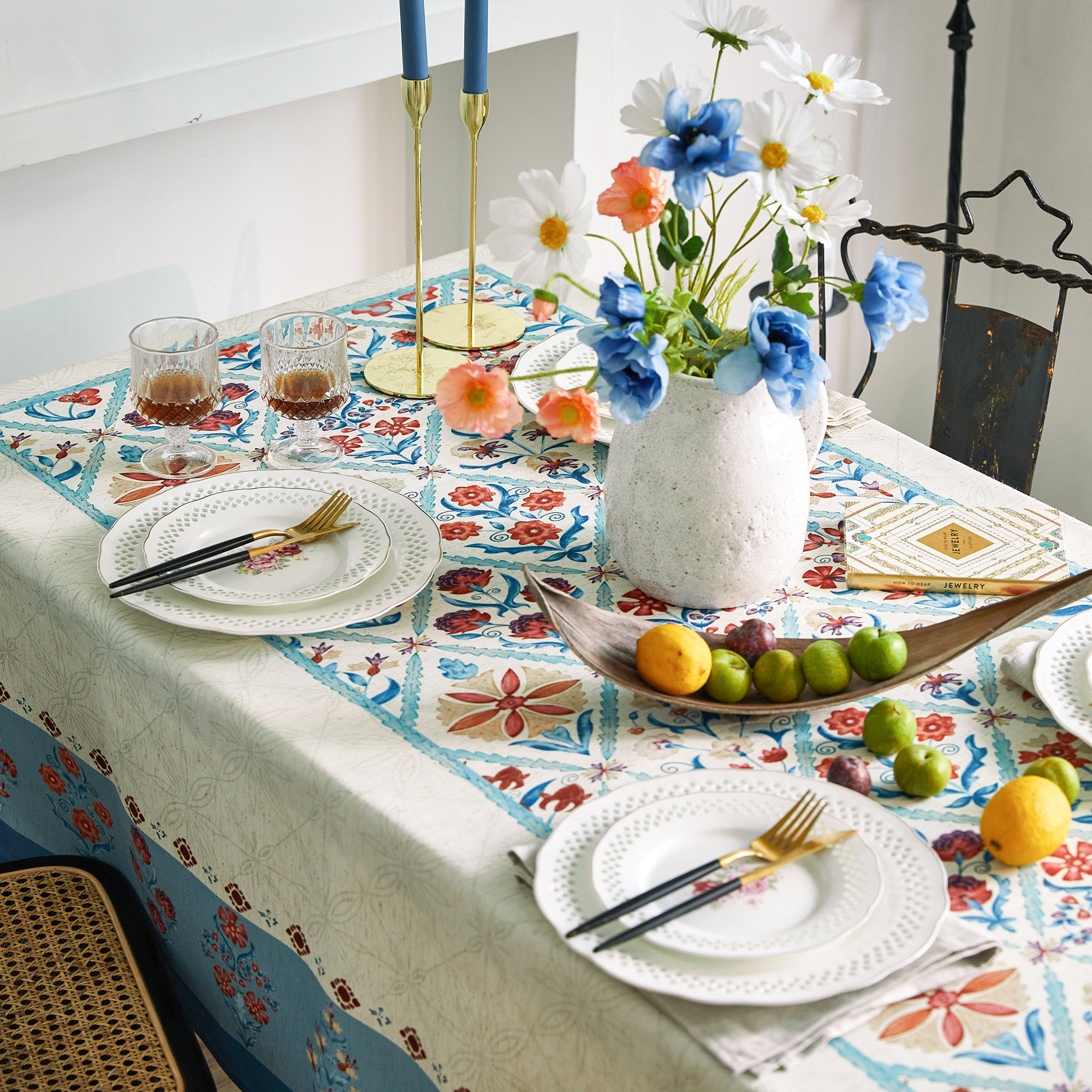 Pair with white porcelain or glassware, a wooden tray, and light gold or bronze candlesticks to create a gentle French brunch atmosphere.