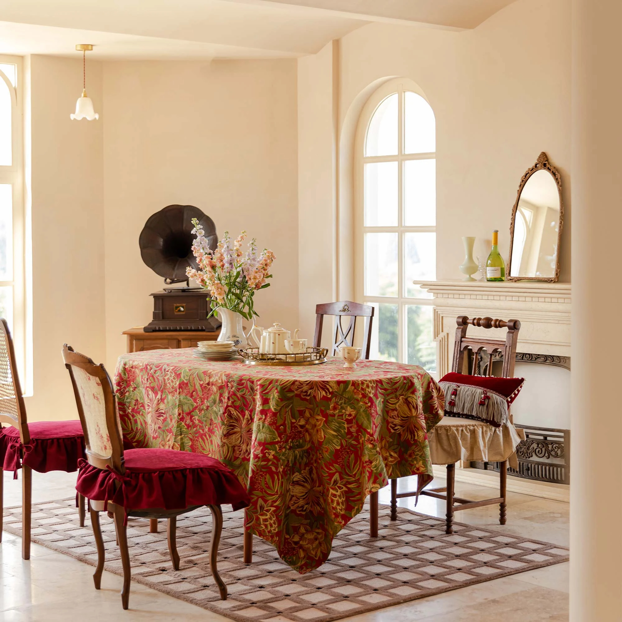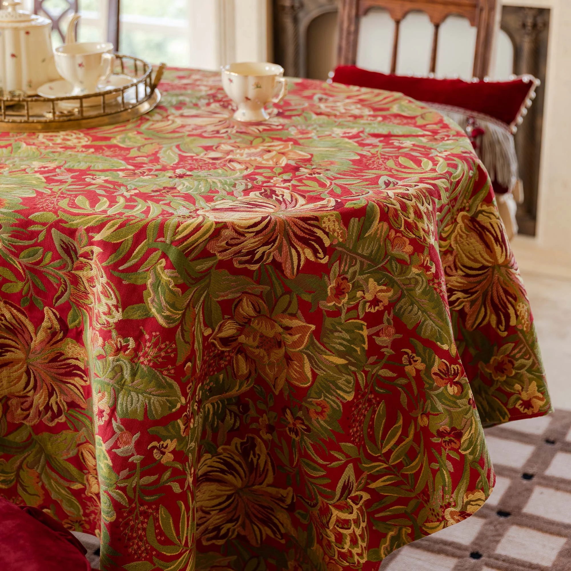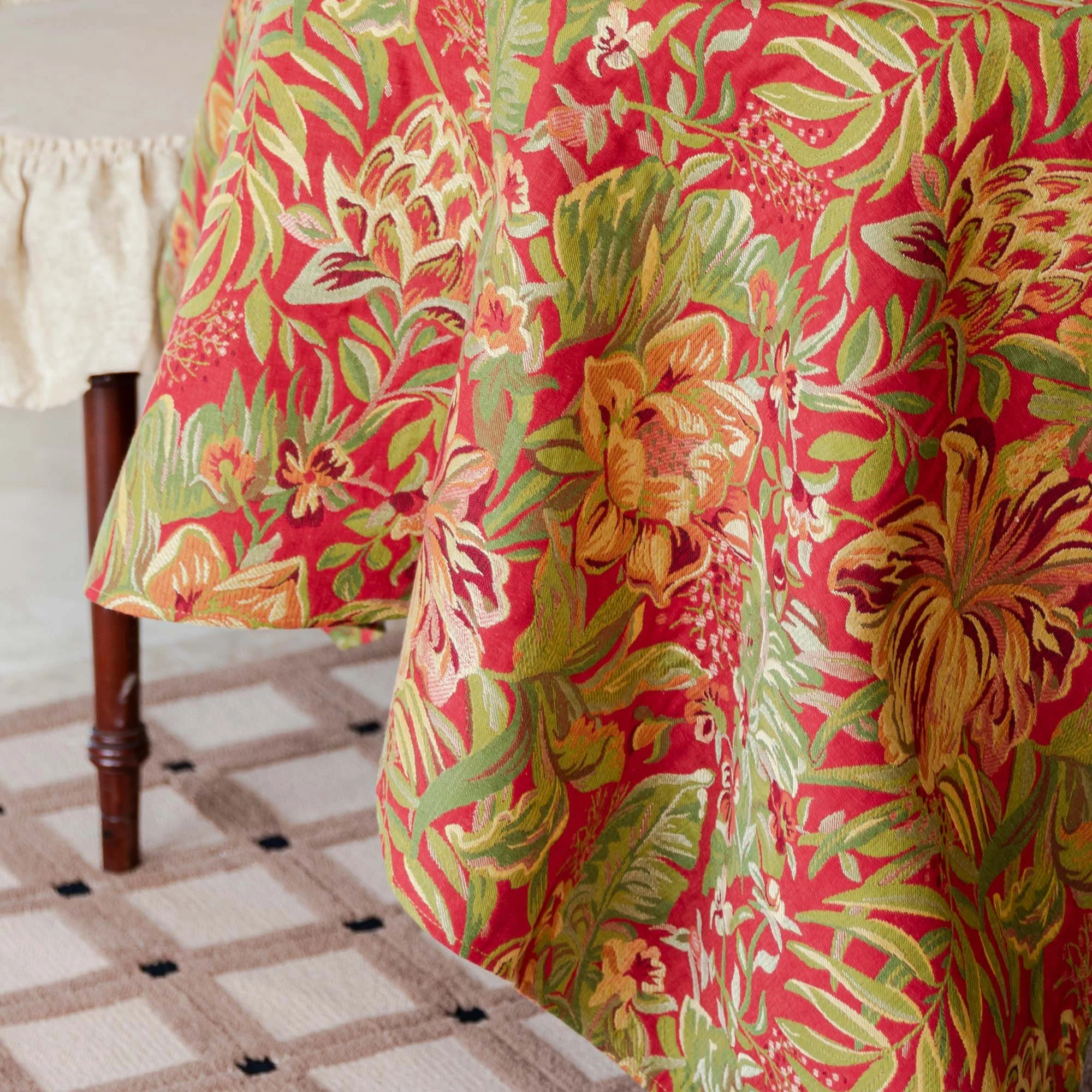Elegant drape: The medium-weight fabric drapes smoothly and slips smoothly, enhancing the dining table’s luxurious feel.
